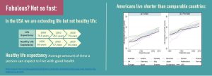 - Healthy live expectancy: Long live is not enjoyable if the quality of live is low. The healthy live expectancy takes the years of ill health into account. It is the average amount of years in good health a person can expect at birth. The average in the US is estimated at 66 years and it hasn’t increased during the last 20 years. This gap of 13 years is the reason why many seniors live their last years with a low quality of life.